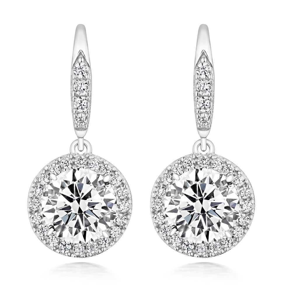 Lapidary LEG0030 CZ Halo Style Short Drop Sterling Silver Earrings 1422167